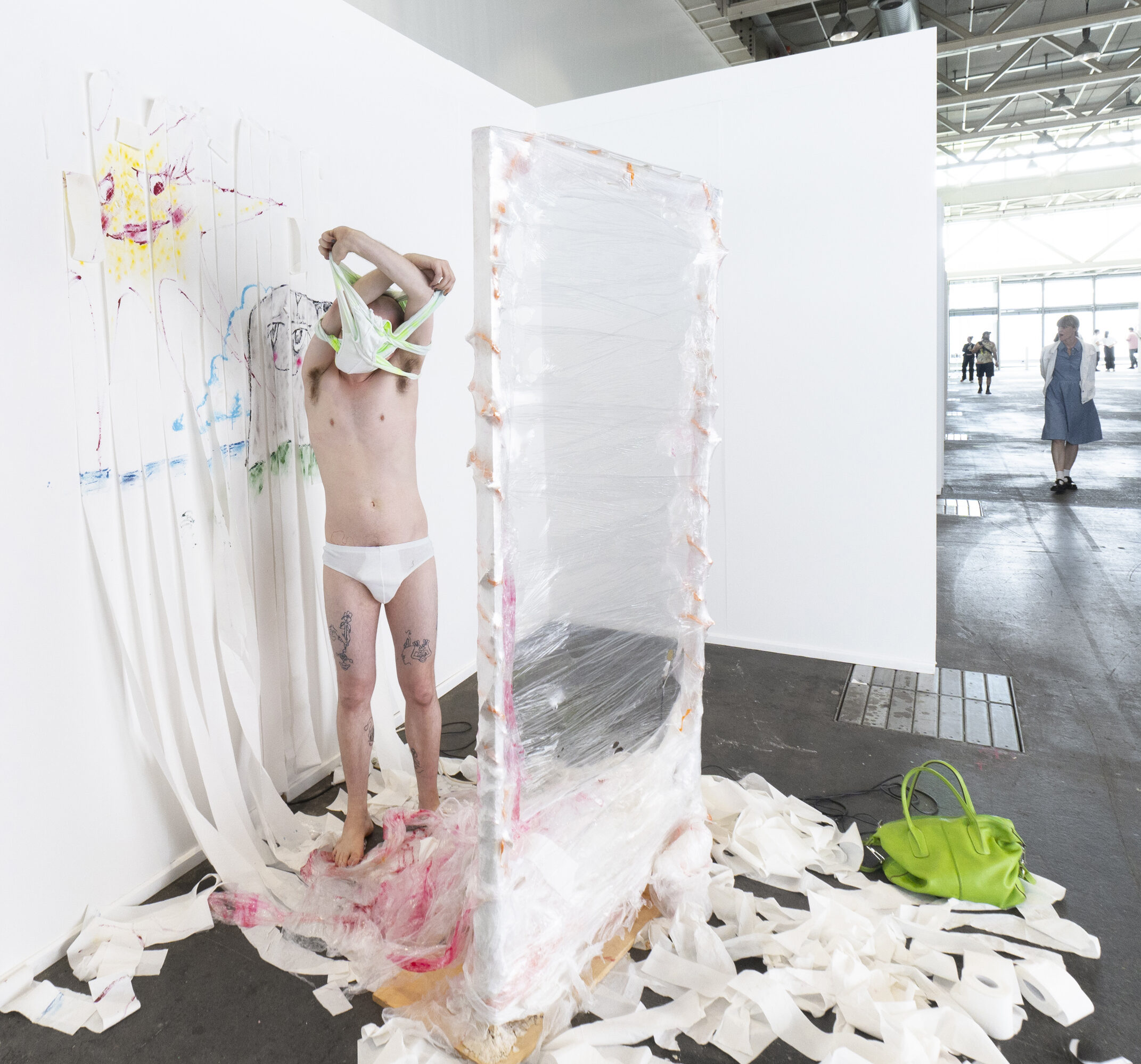 Nelson Schaub is an artist based in Biel. Through performances, videos, poetry, drawings and music (under the pseudonym Être Peintre), they evoke solitude, imagination, queer experiences, escapism and pessimism. They conjure up a spectrum of dramatic and sudden emotions, often ambiguous or contradictory. They works on banal objects such as toilet paper, pantyhose, yoghurt pots or razors, to give these floating feelings a palpable materiality. As some people like to say: “Reality doesn’t care about feelings”. Here, feelings are reality.